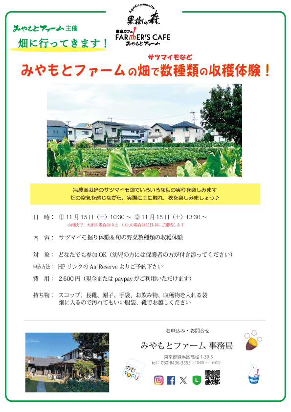 お子さんも大人の方も、土のにおいと秋の実りを感じに来てください✨