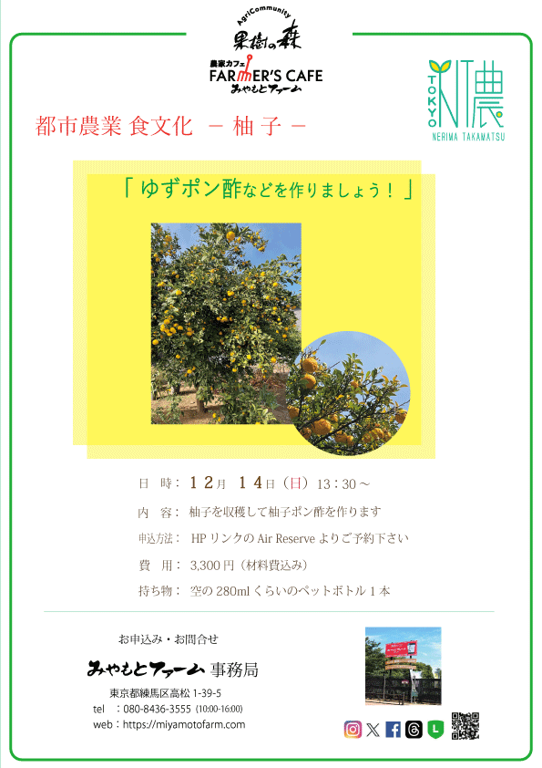 『都市農業 食文化』「柚子ポン酢などを作りましょう!」のお知らせ